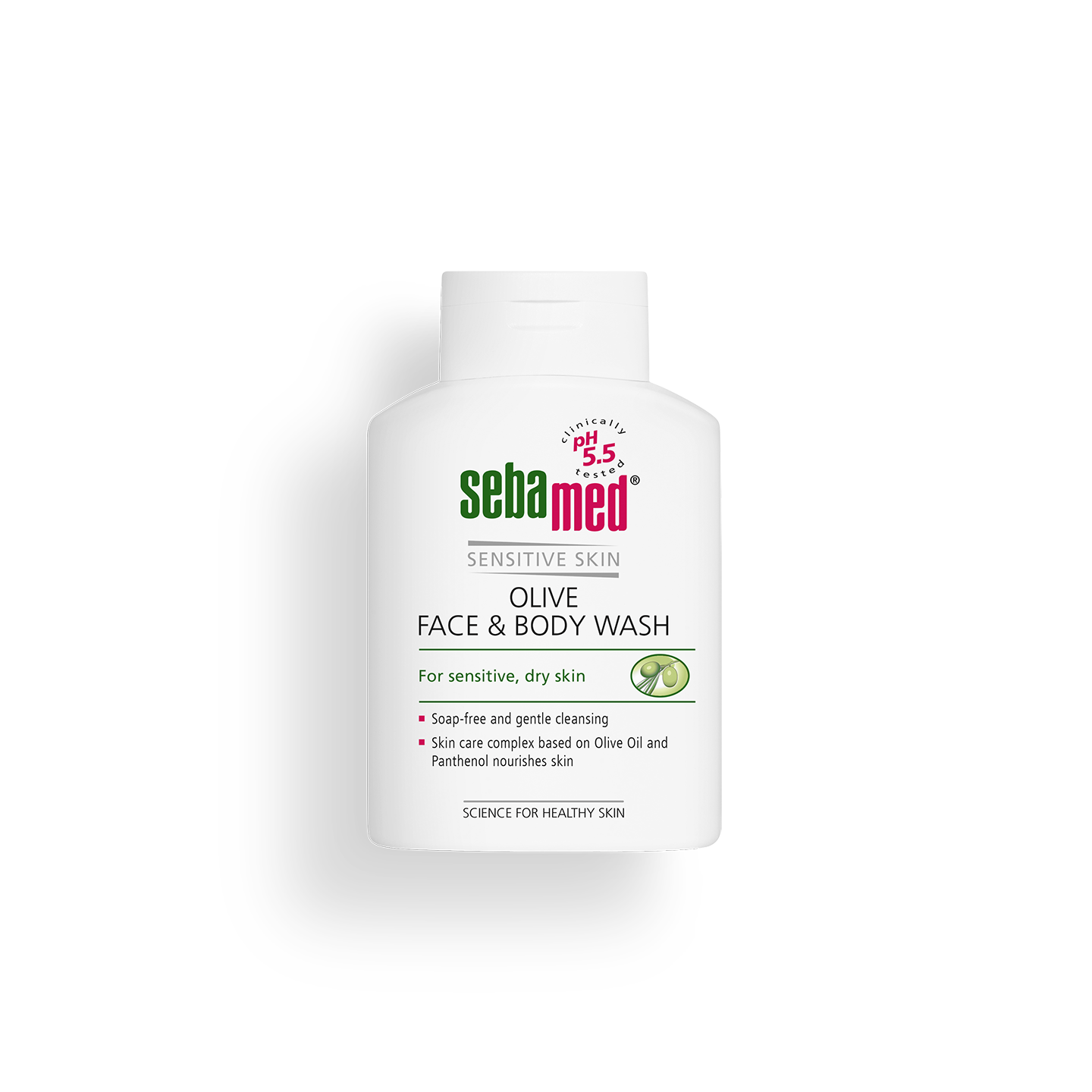 100% soap and alkali free, Sebamed Olive Face and Body Wash provides protection and smoothness for sensitive skin. Its pH 5.5 value of healthy skin supports and protects the natural barrier function of the skin’s acid mantle and can be used in cases of soap intolerance and cleansing in skin diseases.
