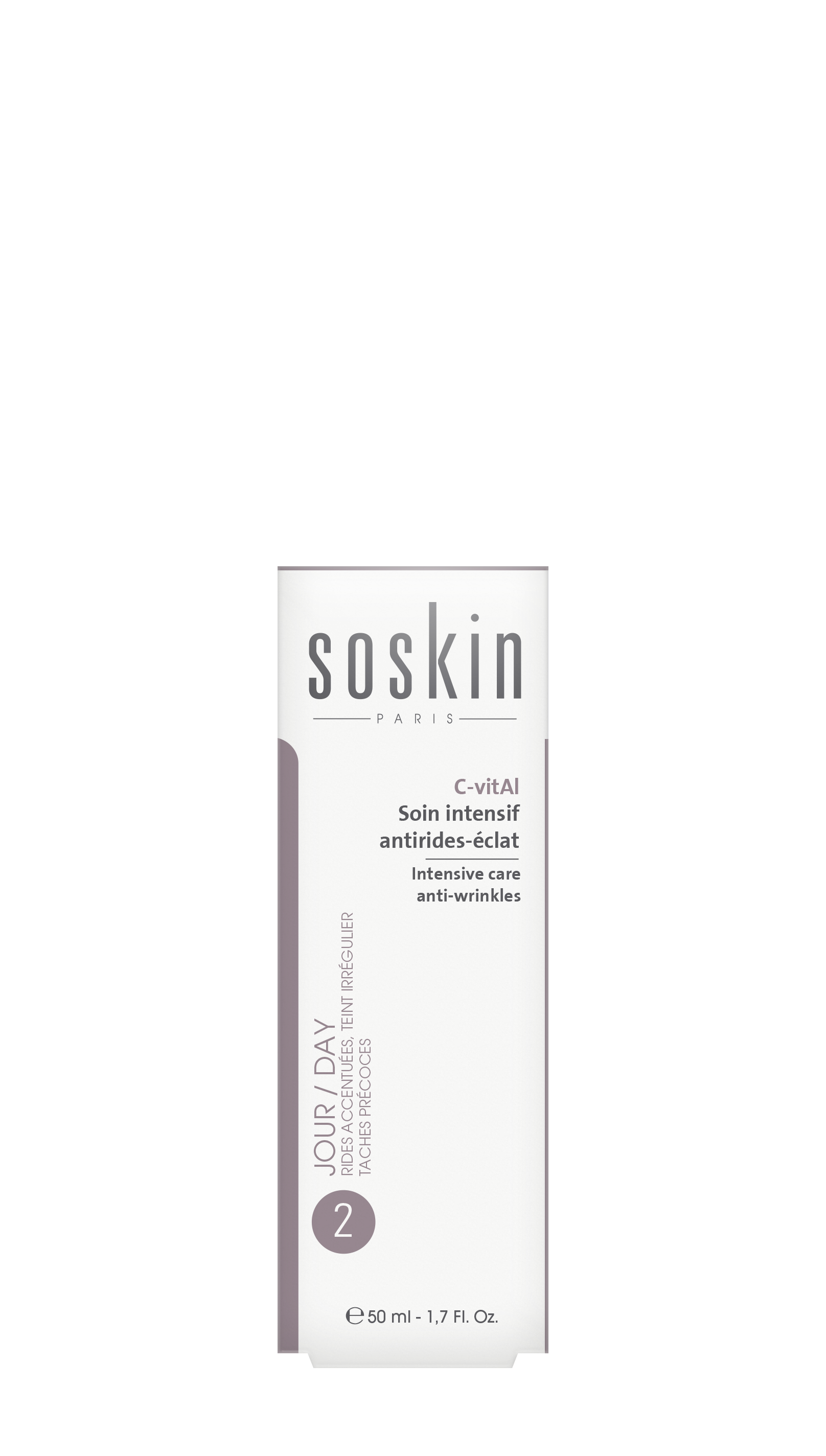 C-vital complex combines 2 recognized references in anti-ageing : pure retinol with progressive release and stabilized vitamin C.