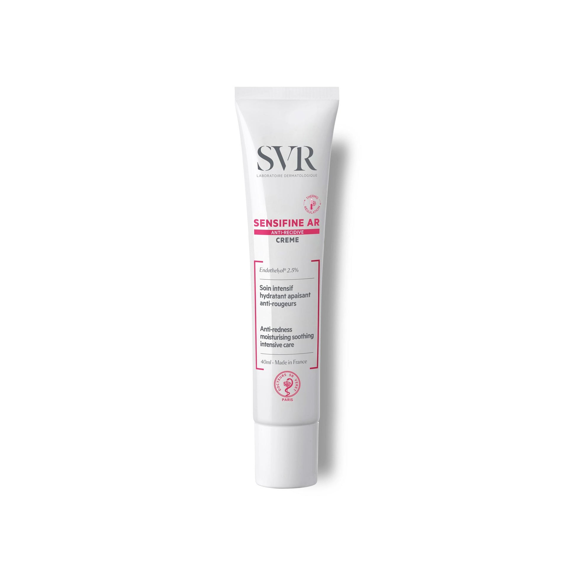 Because skin affected by redness struggles with temperature regulation, Sensifine AR Cream instantly puts out the fire with a long-lasting soothing effect. Enriched with green pigments, redness is neutralized to even out skin tone. It contains: Aqua (Purified Water), Caprylic/Capric Triglyceride, Butyrospermum Parkii (Shea) Butter, Glycerin, Behenyl Alcohol, Silica, Squalane, Arachidyl Alcohol, Glyceryl Stearate, Caffeyl Glucoside, Carbomer, Ci 10020, Ci 42090, Dipotassium Glycyrrhizate, Gallyl Glucoside, Methyl Diisopropyl Propionamide, Rosmarinyl Glucoside, Sodium Sulfate, Saccharide Isomerate, 1.2-Hexanediol, Arachidyl Glucoside, Caprylyl Glycol, Citric Acid, Methyl Methacrylate Crosspolymer, Pentylene Glycol, Sodium Citrate, Sodium Hydroxide